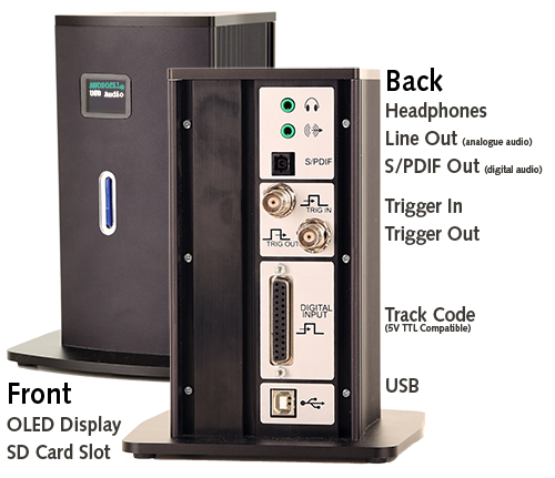 AudioFile is a zero latency triggerable audio stimulus generator (ASG). It has a complete collection of analogue and digital audio outputs for easy integration. Choose from headphone and line, or optical S/PDIF for connection to a third-party amplifier. Standard TTL stimulus markers are compatible with 3rd party ERP/EEG systems.
